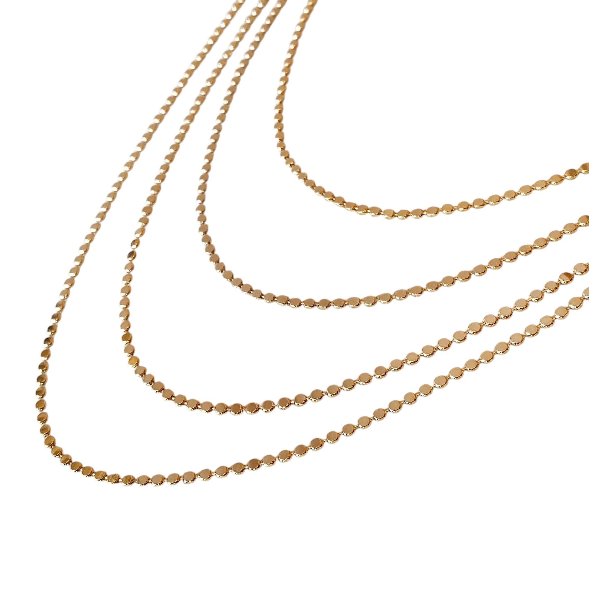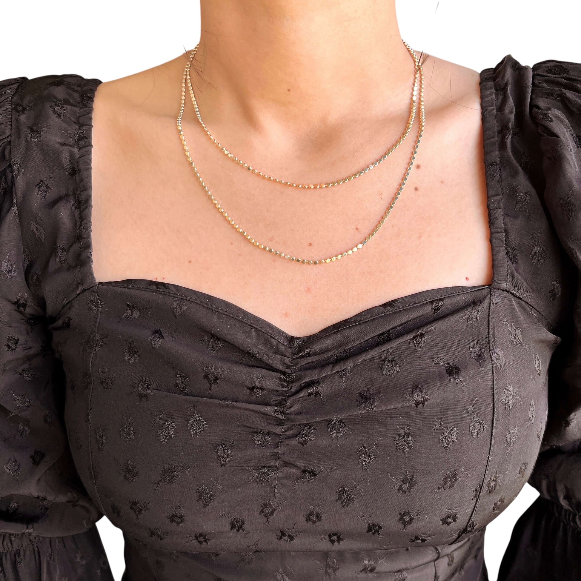 Discover the distinctive beauty of this flat ball chain necklace. The unique flattened spheres create subtle texture and elegant dimension along a delicate 2mm design—refined, versatile, and beautifully unique.