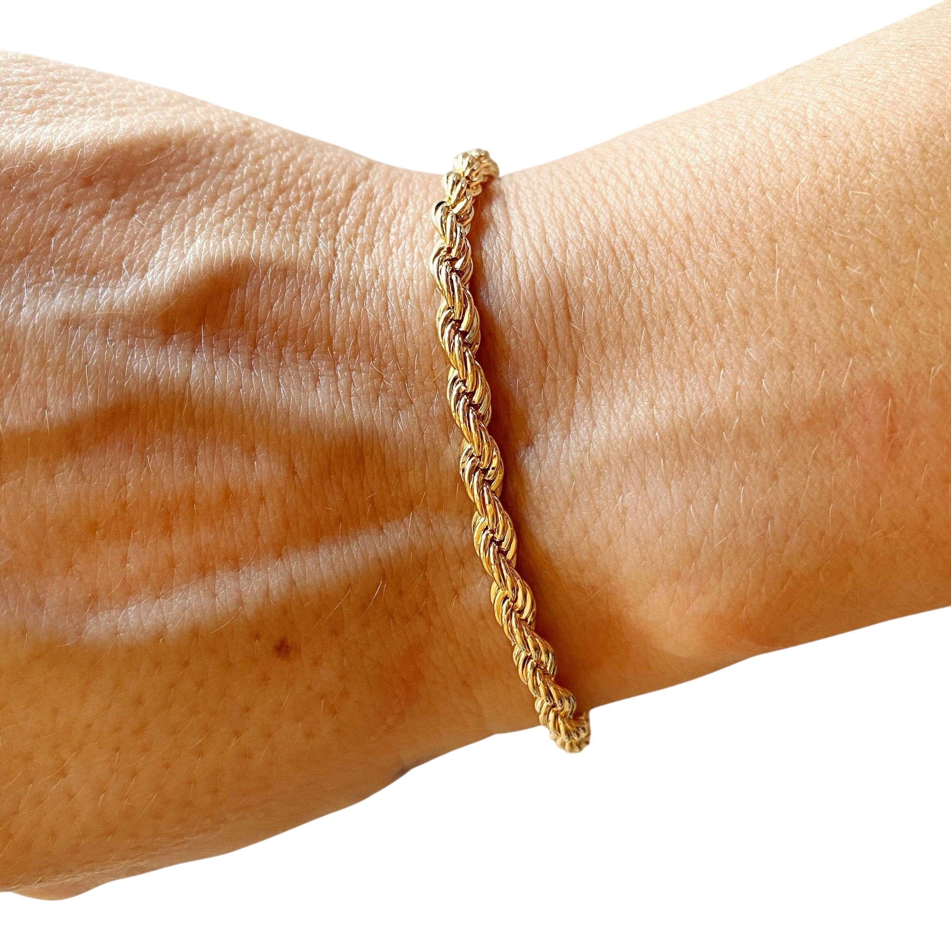 There's something satisfying about rope chain—the way each twisted strand catches light differently, the subtle texture that adds dimension without trying too hard. This 4mm version hits that perfect sweet spot: substantial enough to notice, refined enough to wear every single day. It's the bracelet that somehow works with everything.
