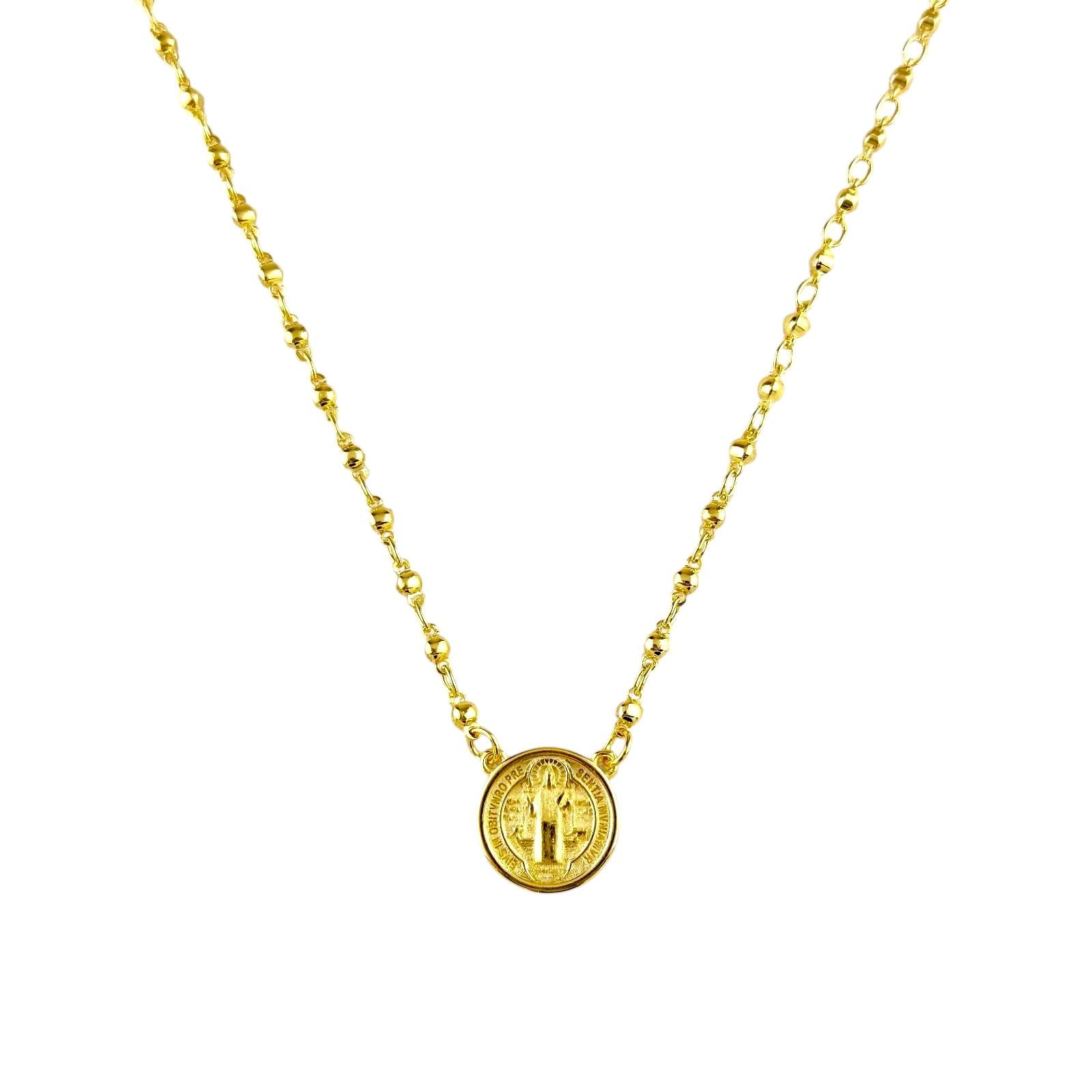Saint Benedict Medal Bead-Chain Necklace - 18K Gold Filled - Faith, Protection, Divine Grace
