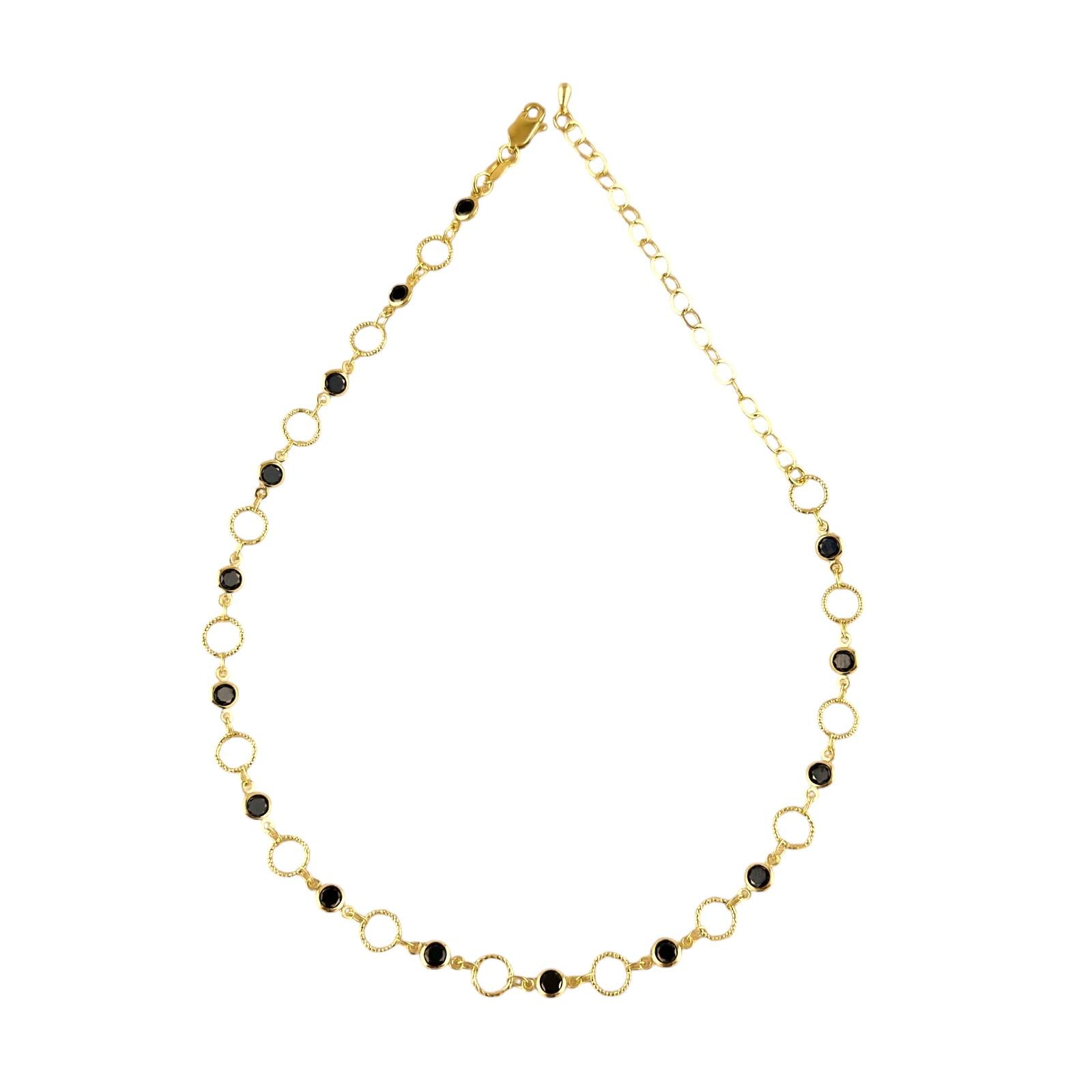 Black CZ Circles Choker 18k Gold Filled Necklace