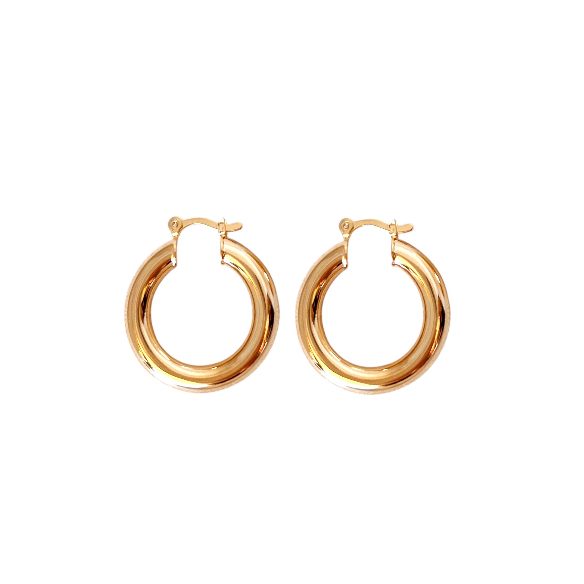 Featuring hypoallergenic 18k gold-filled material, these beautiful 25mm classic tube hoop earrings are the perfect accessory for any modern woman. With a timeless design, these earrings will complete any outfit or make a perfect and luxurious gift.