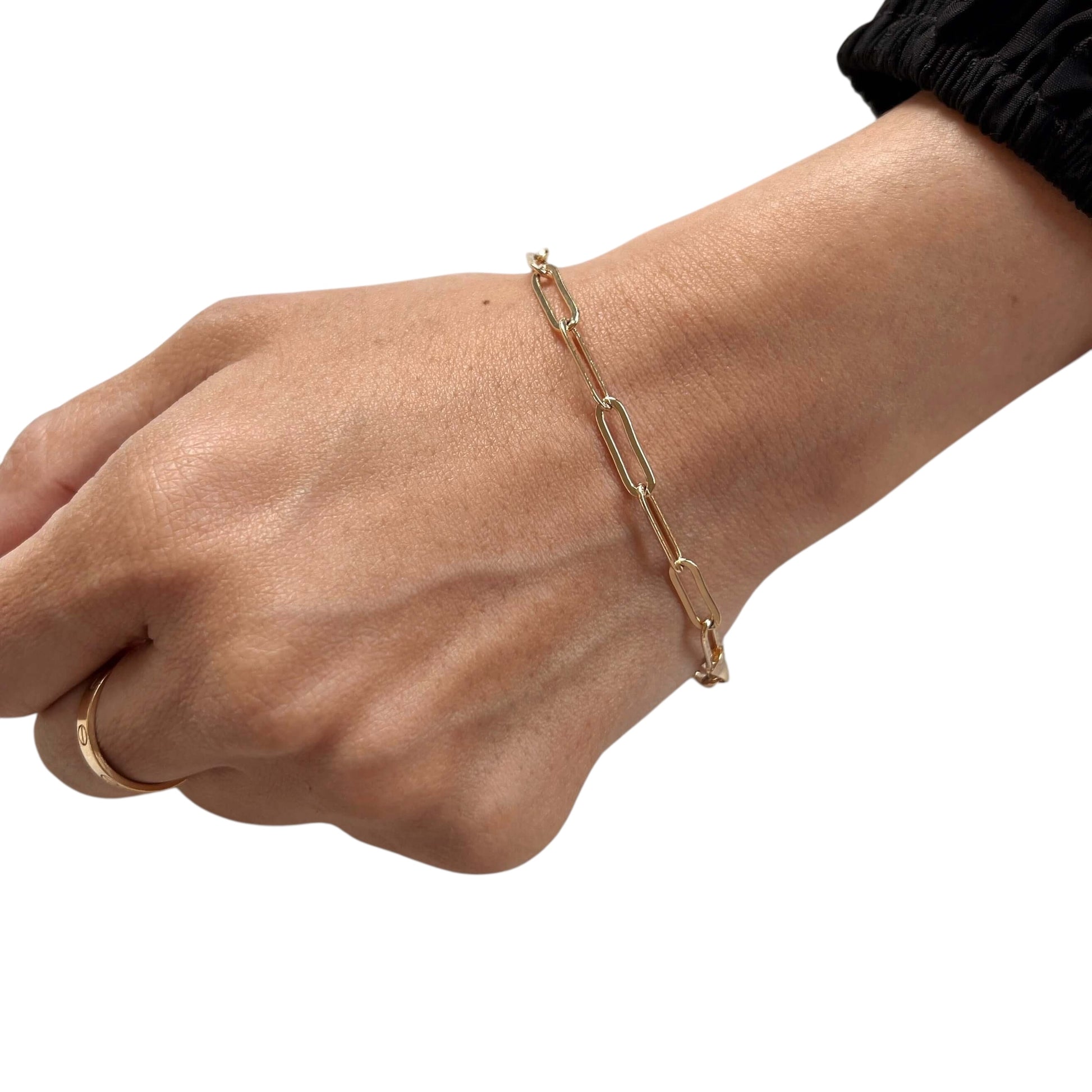 Discover the bracelet that works with everything. This classic paperclip chain brings modern minimalism to your wrist with perfectly proportioned 4.5mm x 14mm links—sleek, versatile, and effortlessly sophisticated.
