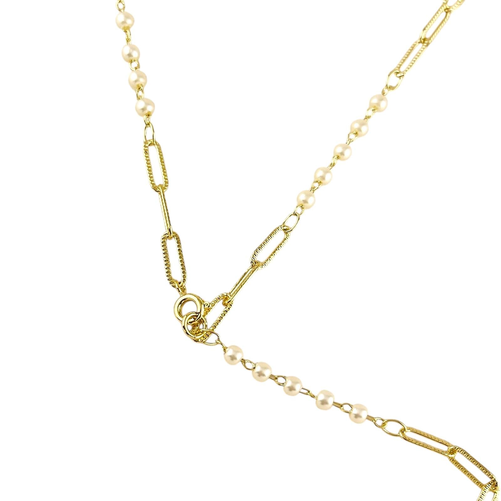 Diamond Cut Paperclip and Pearl Link 18k Gold Filled Drop Necklace