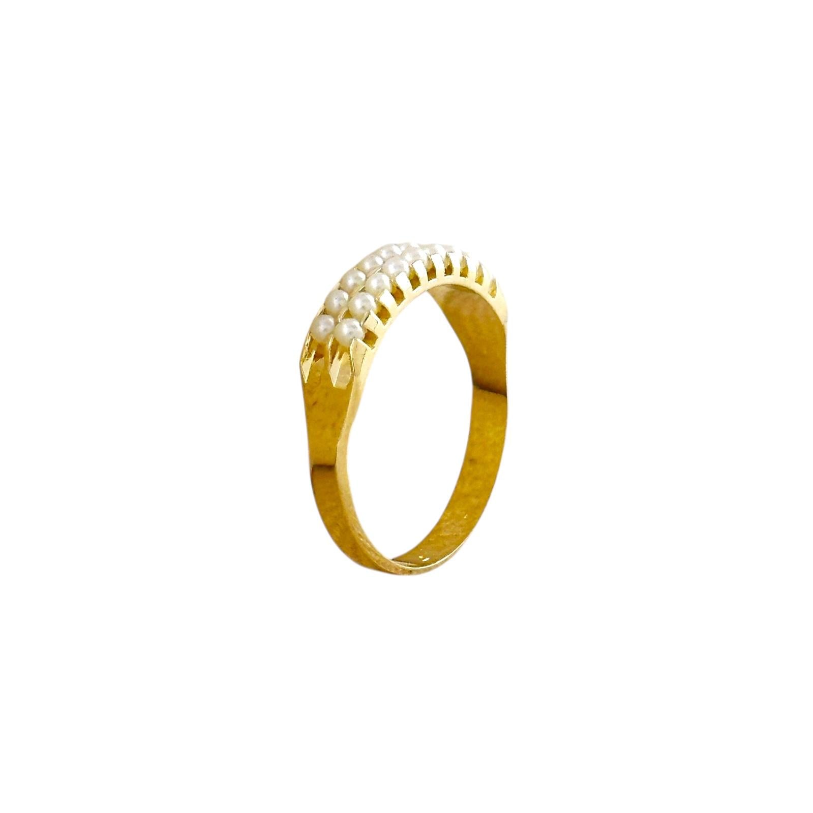 Celebrate your beauty and sophistication with this stunning double row pearl band ring. Two rows of luminous small pearls are elegantly arranged along the band, creating a piece that's as unique and graceful as you are—refined, feminine, and utterly captivating.