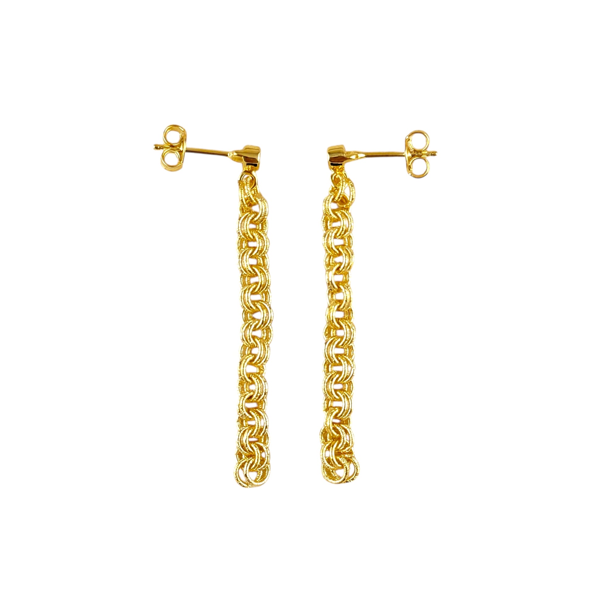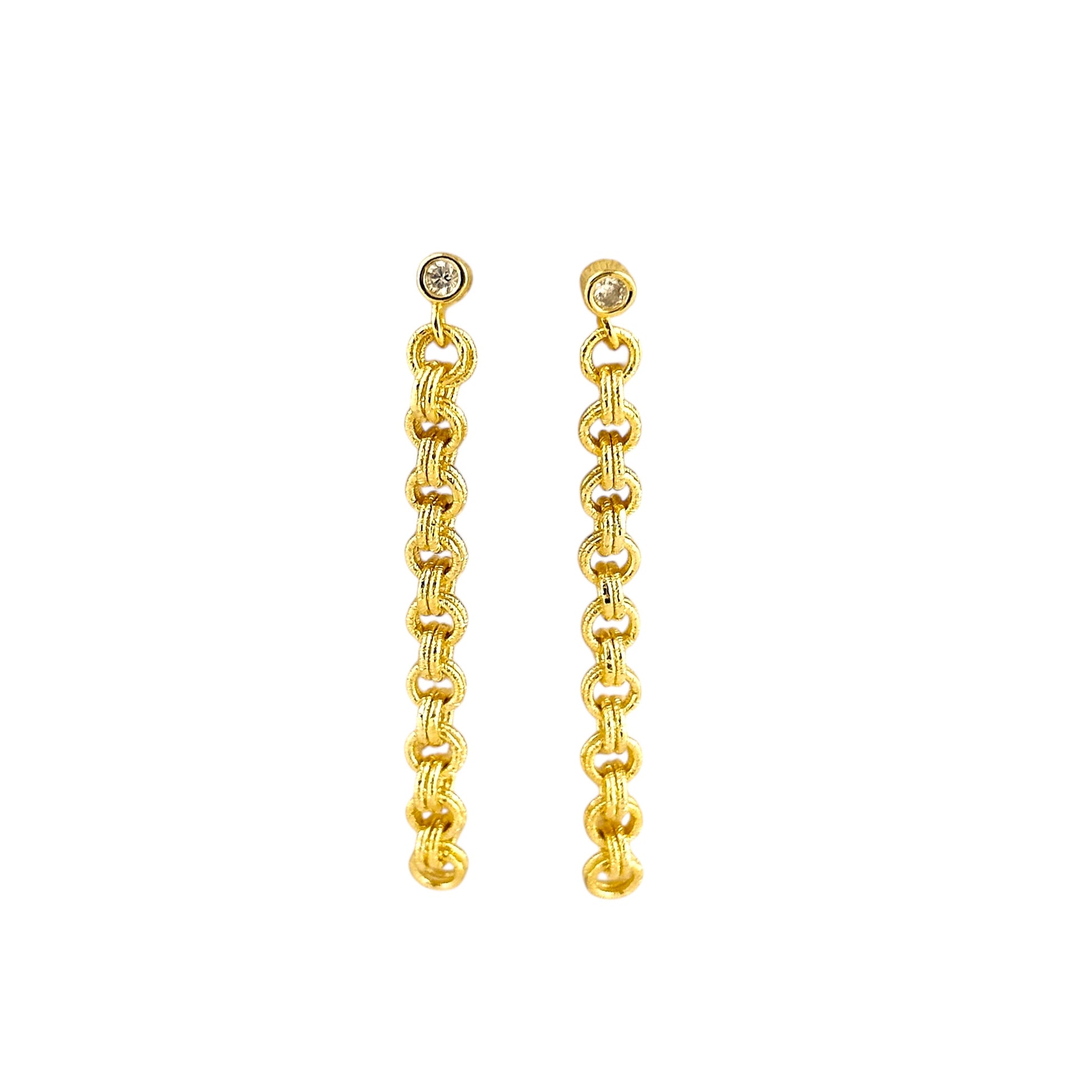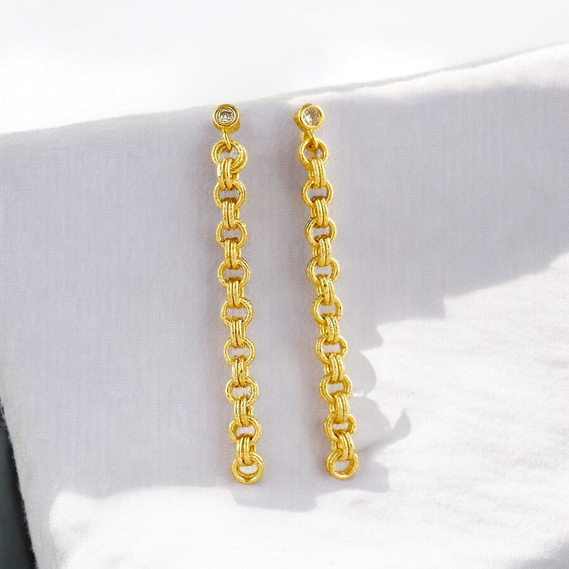 CZ Double Link Rolo Chain Drop 18k Gold Filled Earrings