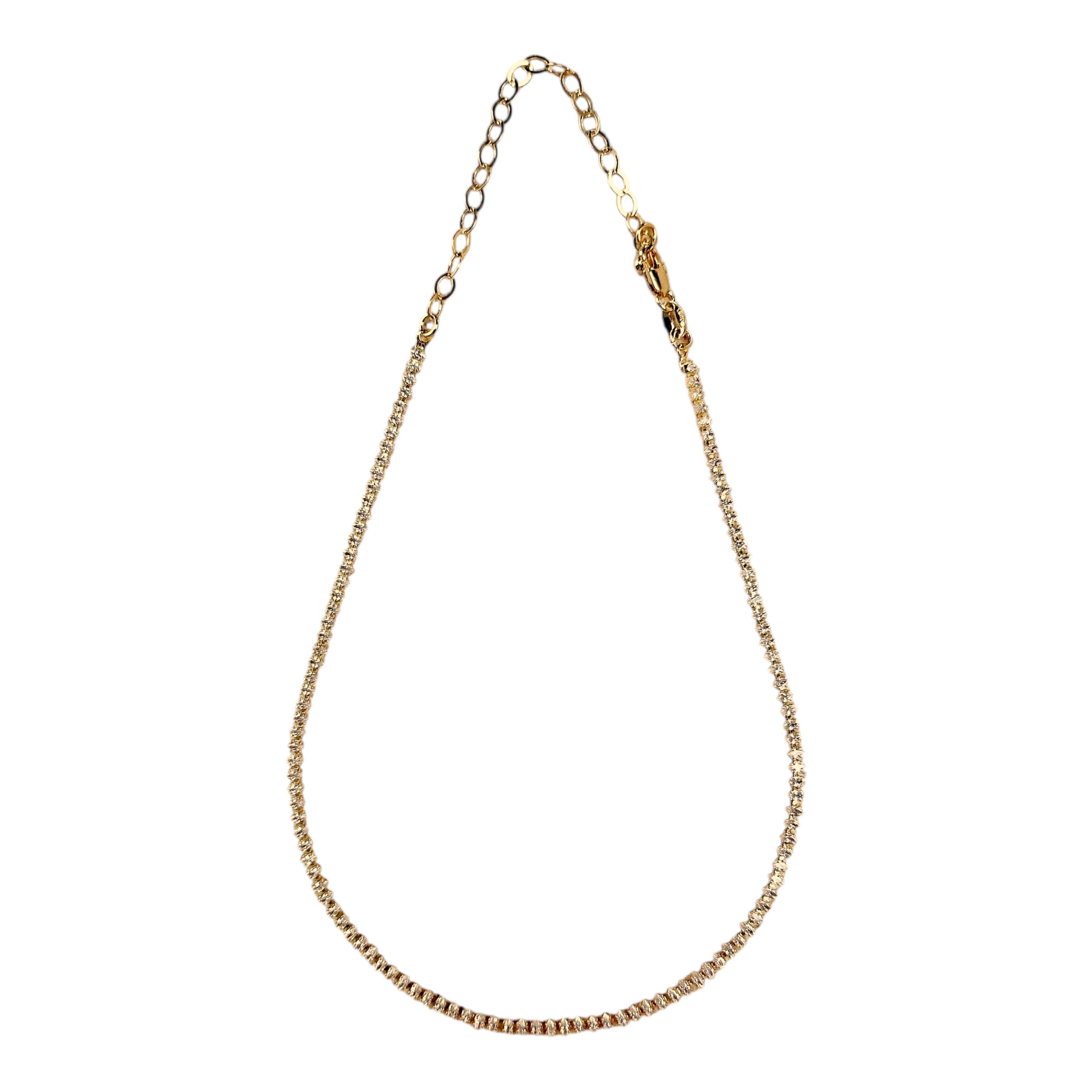 18K gold-filled jewelry is not gold-plated. It has a much thicker layer of real 18K gold — permanently bonded, not a thin coating that fades. Built to last years, not months.