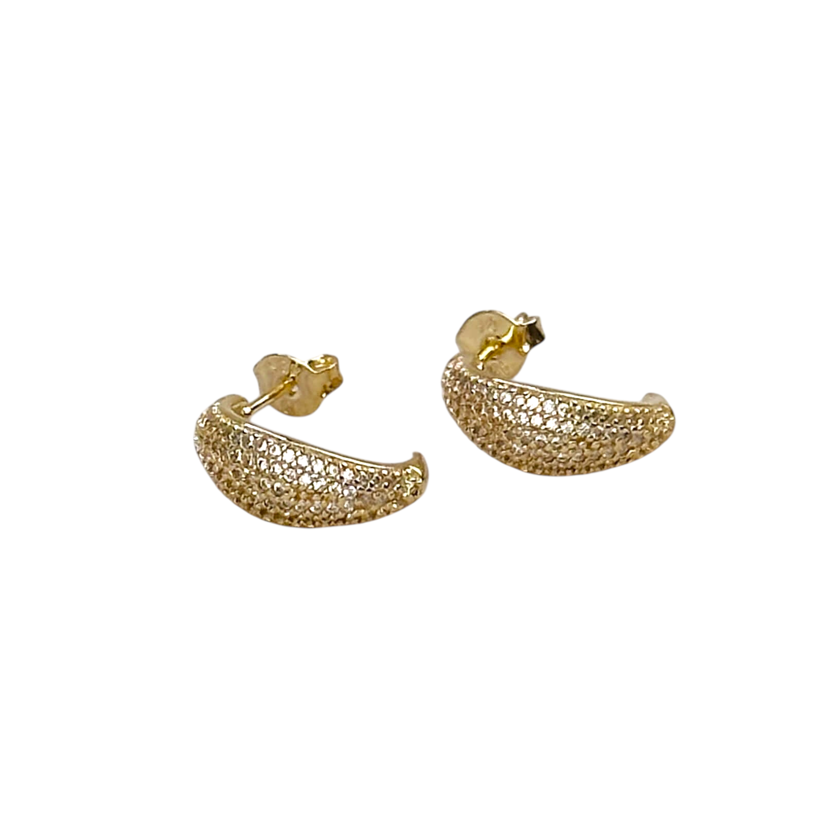 15mm Micro CZ Curve Stud 18k Gold Filled Earrings