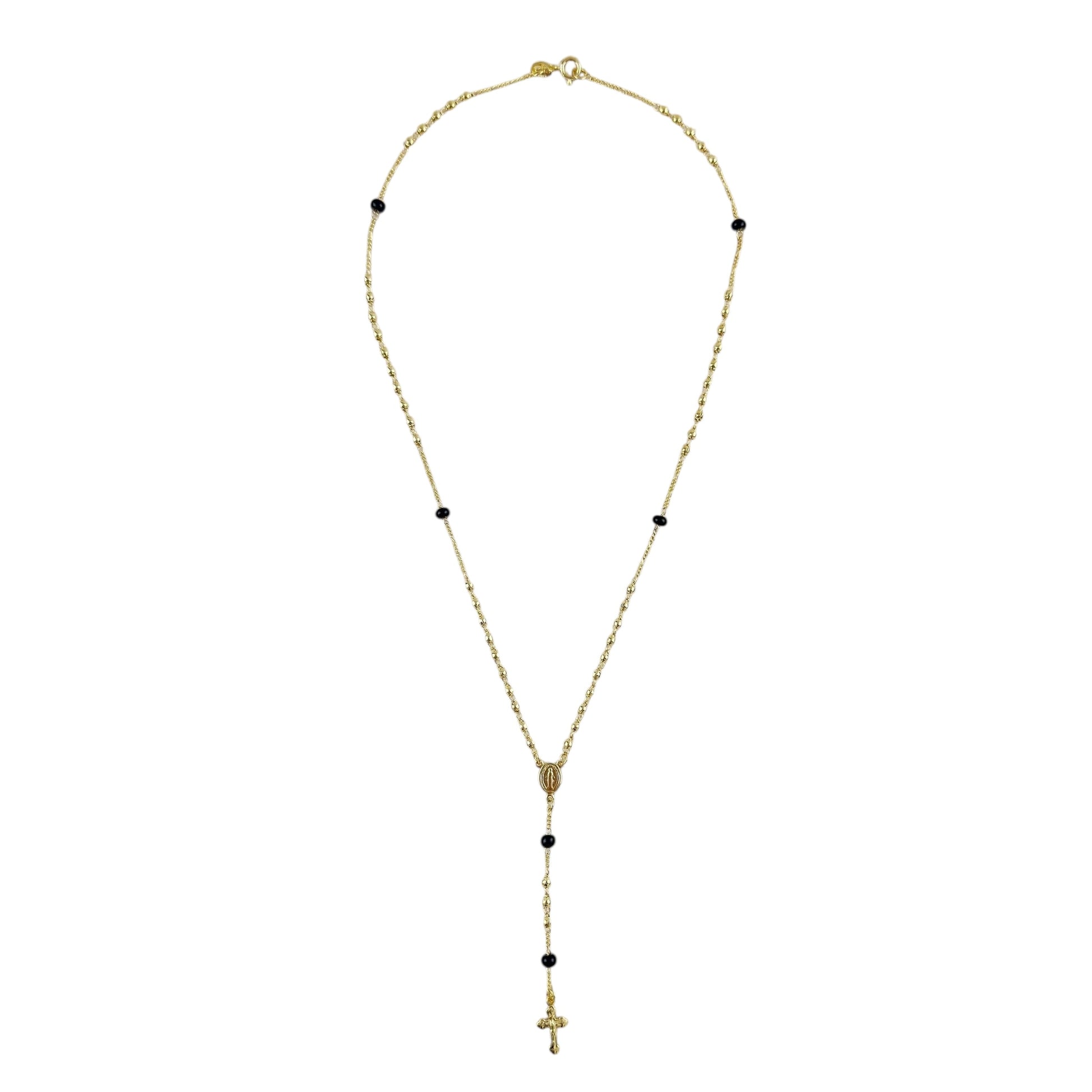 18" Our Motther of Grace Black Bead Rosary 18k Gold Filled Necklace