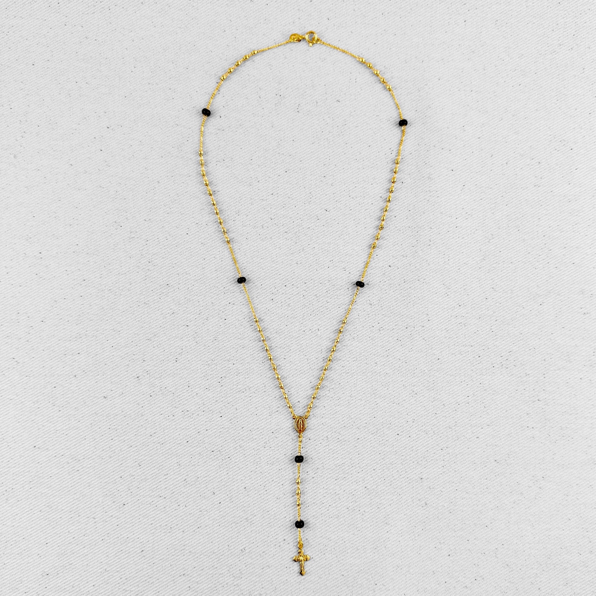 18" Our Mother of Grace Rosary Bead Necklace with Black Accents - 18K Gold Filled - Faith Meets Modern Elegance