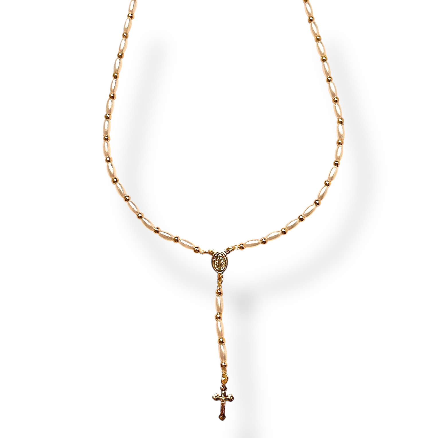 Pearl Rosary Necklace - 18K Gold Filled - Faith & Elegance