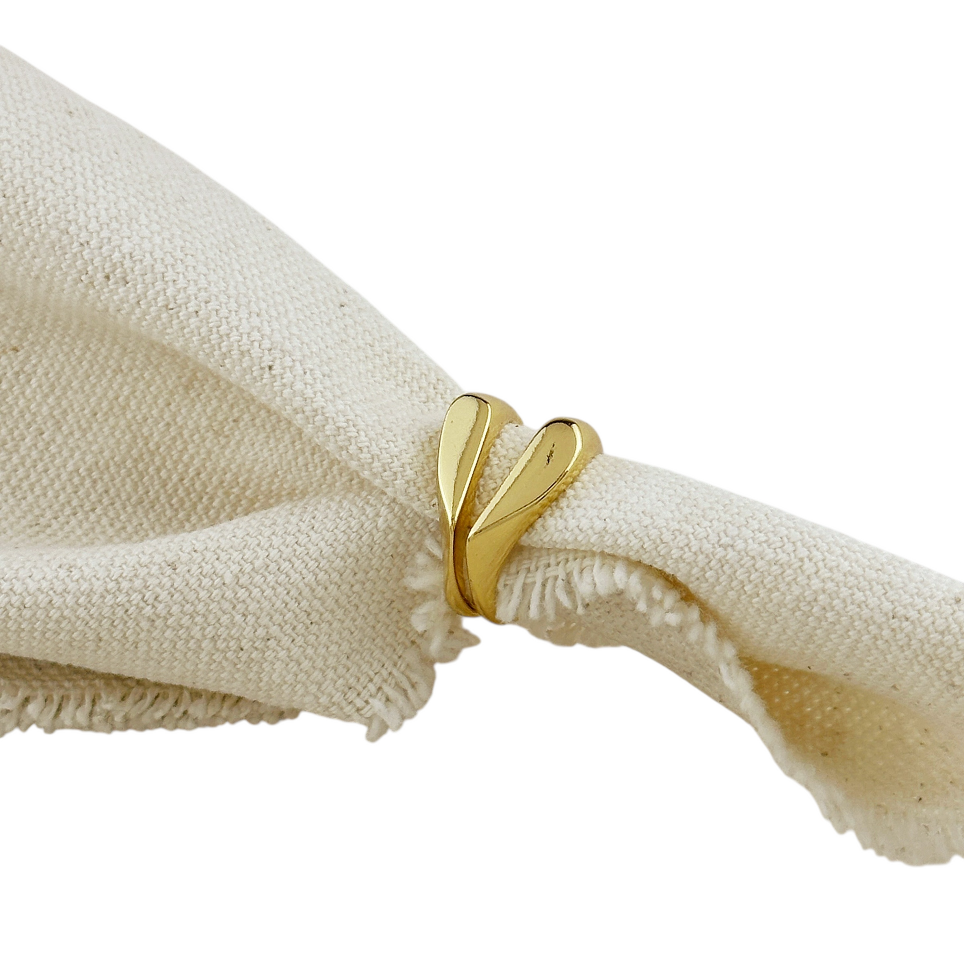 - Double Band Design - Two rings combine to form a polished heart shape