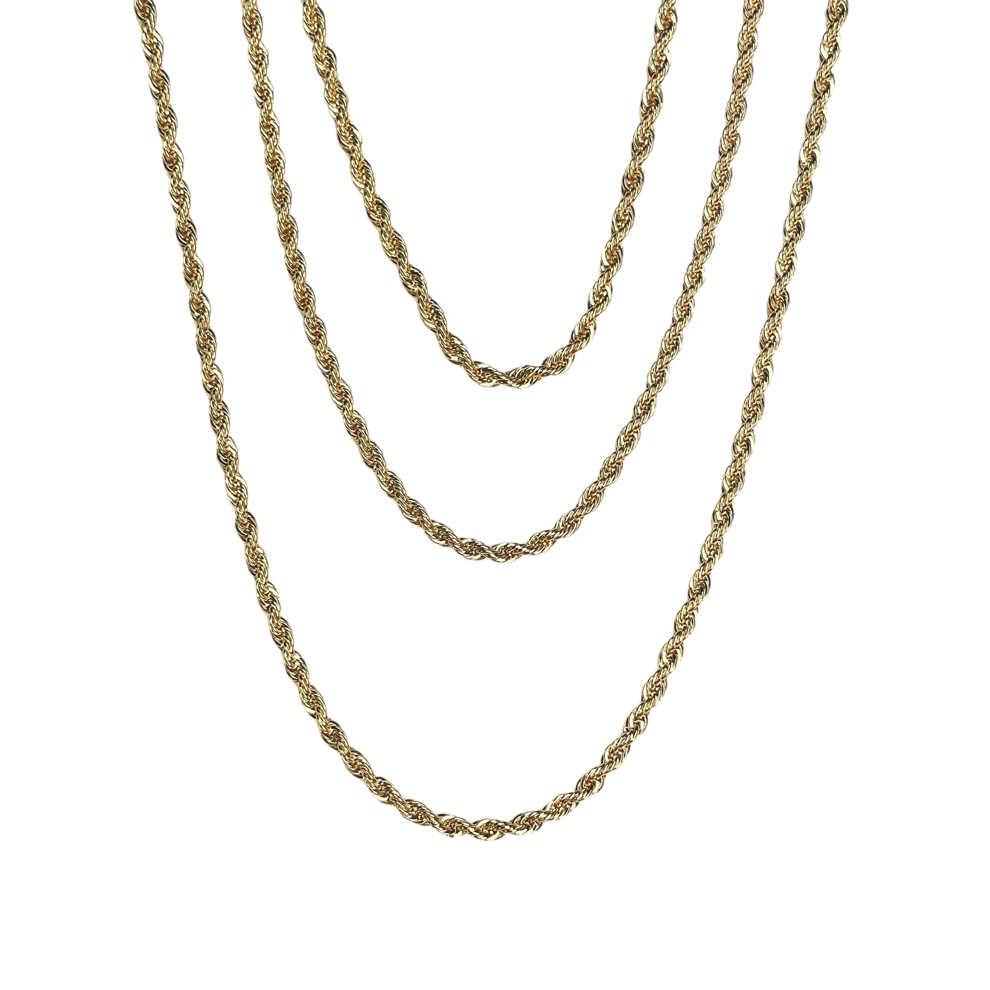 Rope chain doesn't whisper—it speaks. This 4mm twisted design brings that satisfying dimensional texture that catches light from every angle, creating movement and presence that flat chains could never achieve. Bold enough to wear solo, classic enough to never go out of style. It's the chain that makes you feel put together before you've even added anything else.