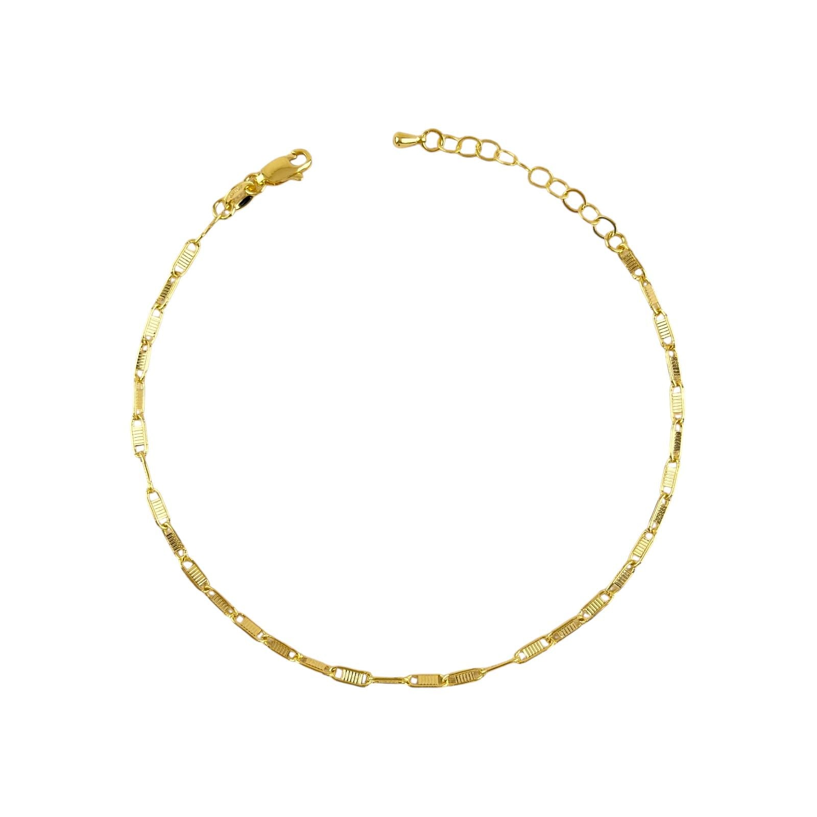 Textured Plate Link Chain Anklet - 18K Gold Filled - Modern Elegance for Your Ankle