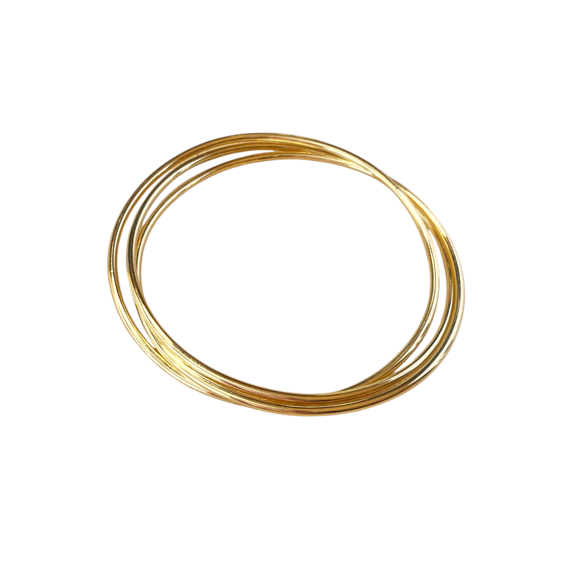 Discover the power of simplicity multiplied. Three intertwined golden bands create a symphony of movement and light on your wrist—this is stacking made effortless, elegance made easy. One bracelet, triple the impact.