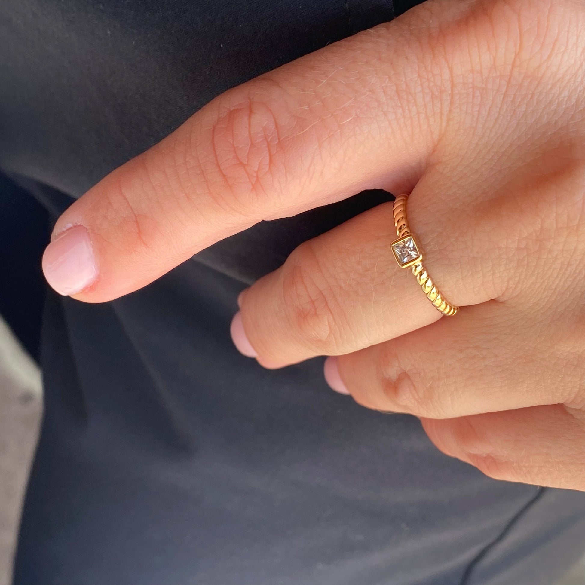 Twisted Solitaire CZ Ring - 18K Gold Filled - Elegant Detail