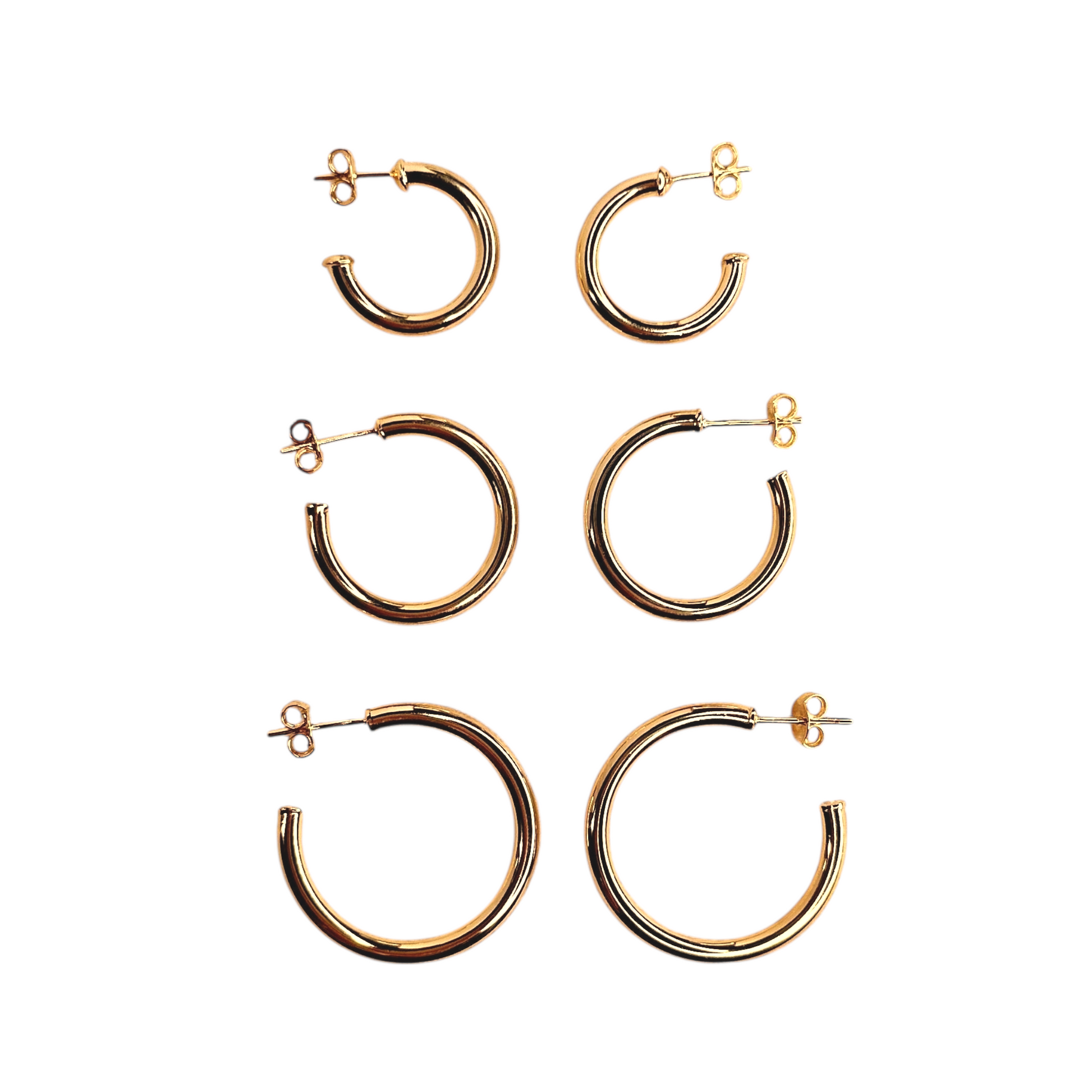 Meet the hoops you'll wear for years. Classic 3mm tube construction in three essential sizes—whether you want subtle, statement, or somewhere between, these are the hoops that work with absolutely everything. This is timeless done right.