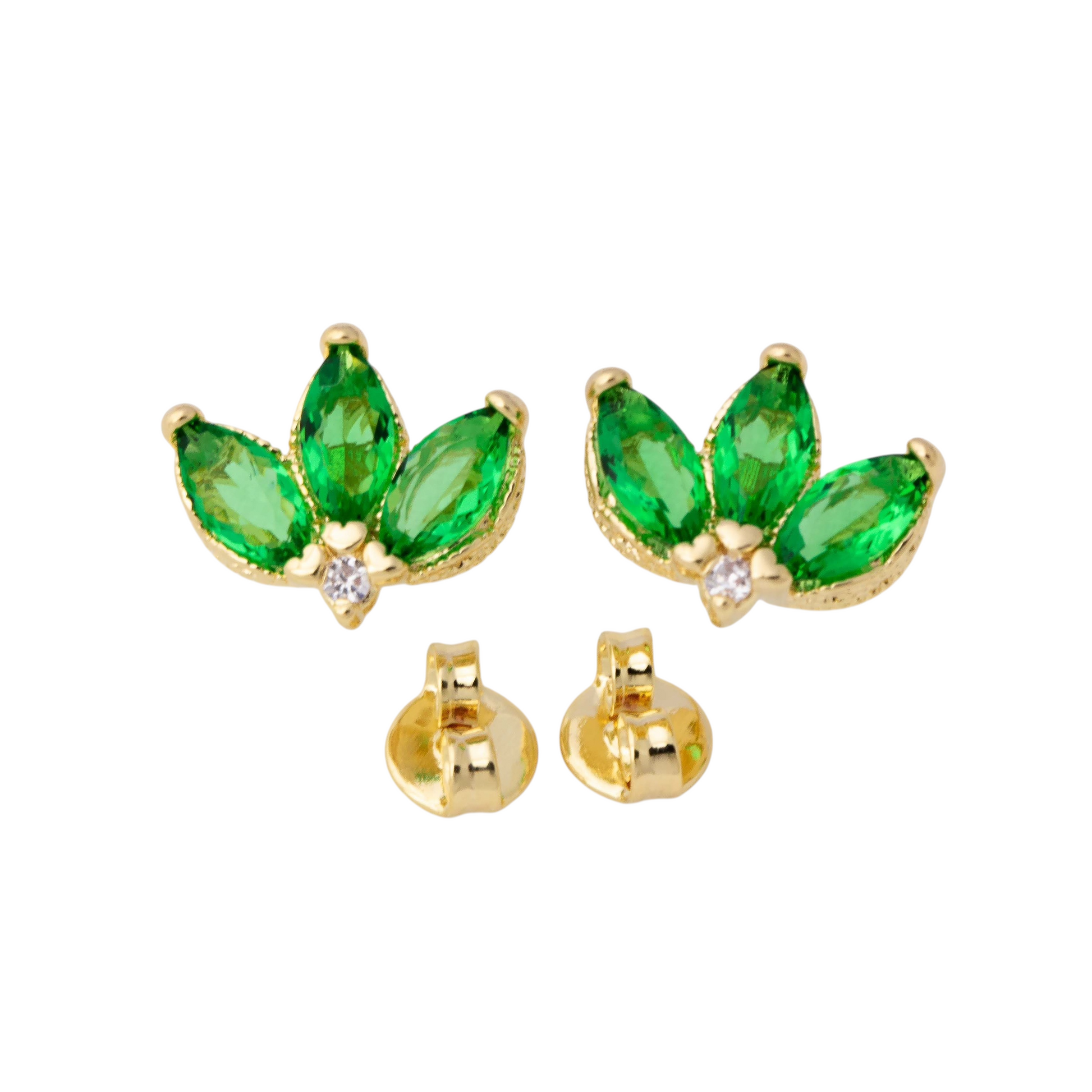 Vintage Emerald Lotus Flower Stud 18K Gold Filled Earrings