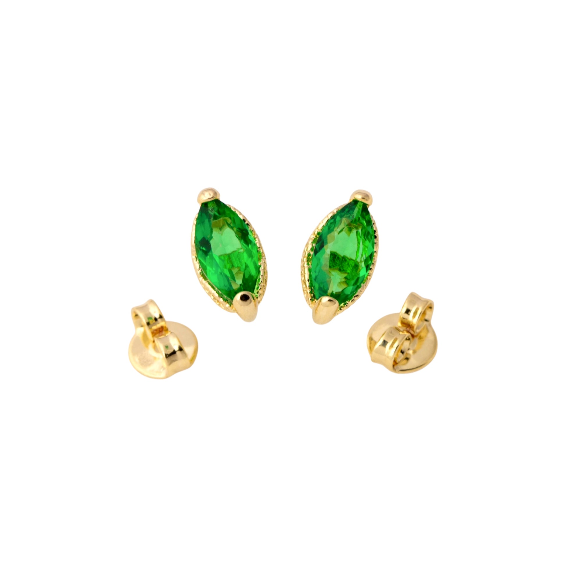 CZ Vintage Marquise Emerald Stud 18K Gold Fille Earrings