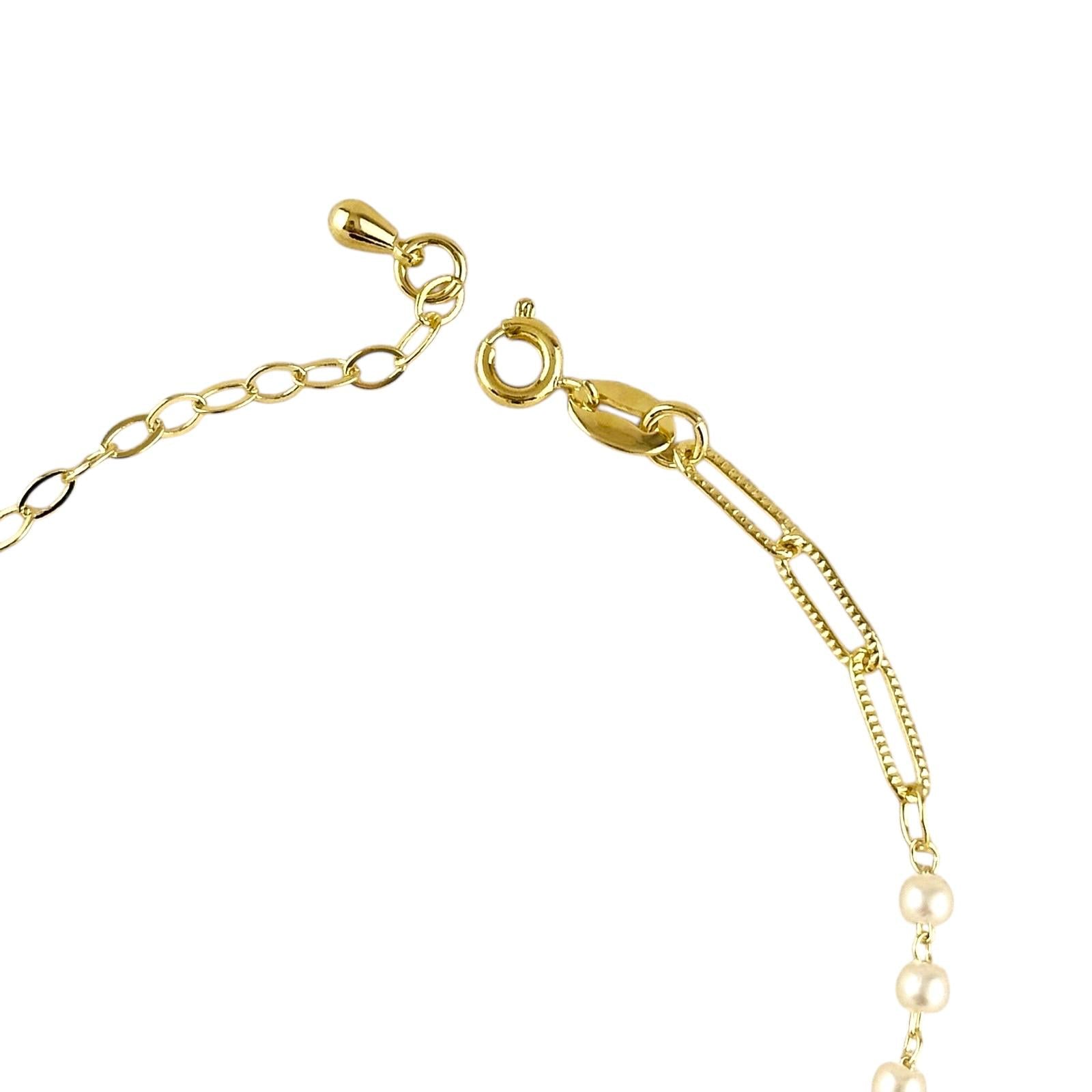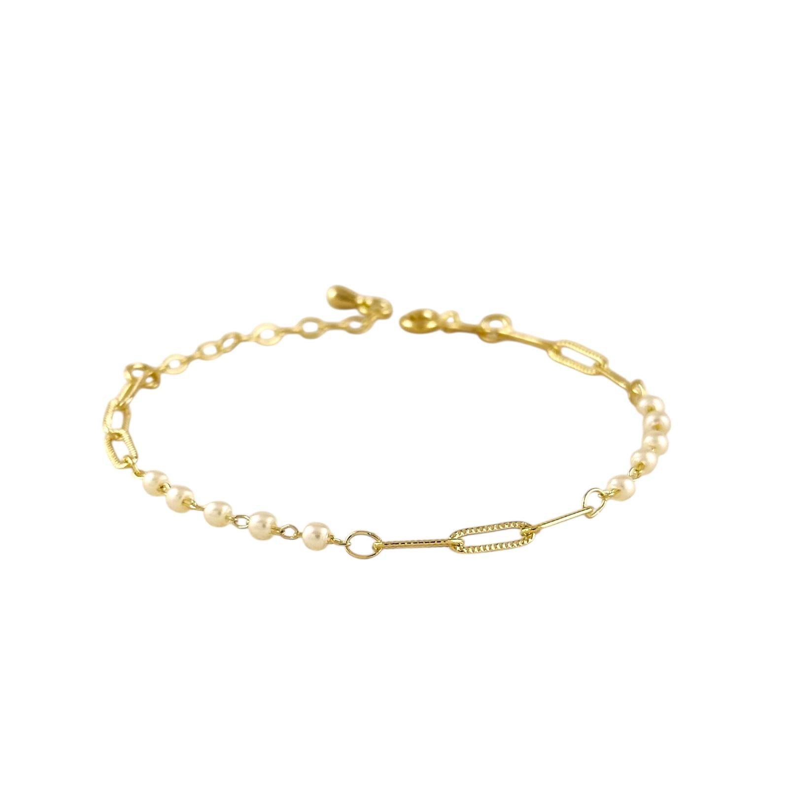 Diamond Cut Paperclip and Pearl Link 18k Gold Filled Bracelet