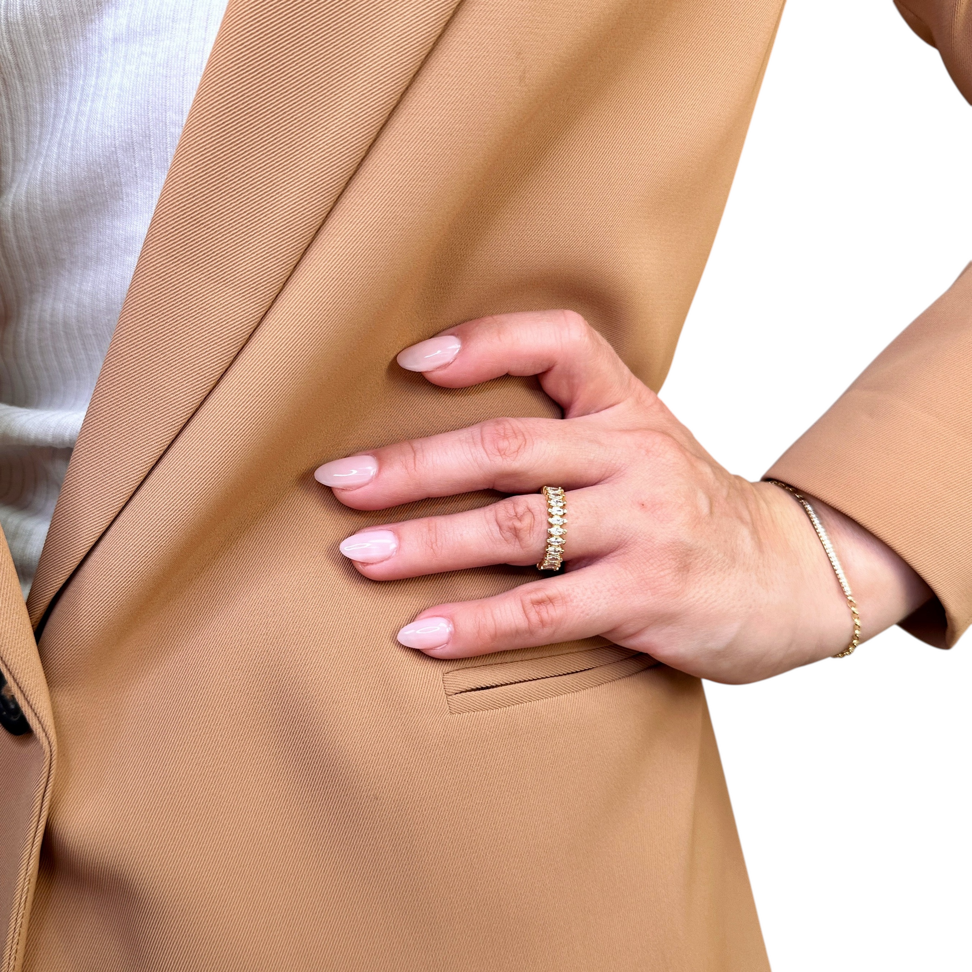 - Endless Sparkle — Marquise stones encircle the band for continuous brilliance