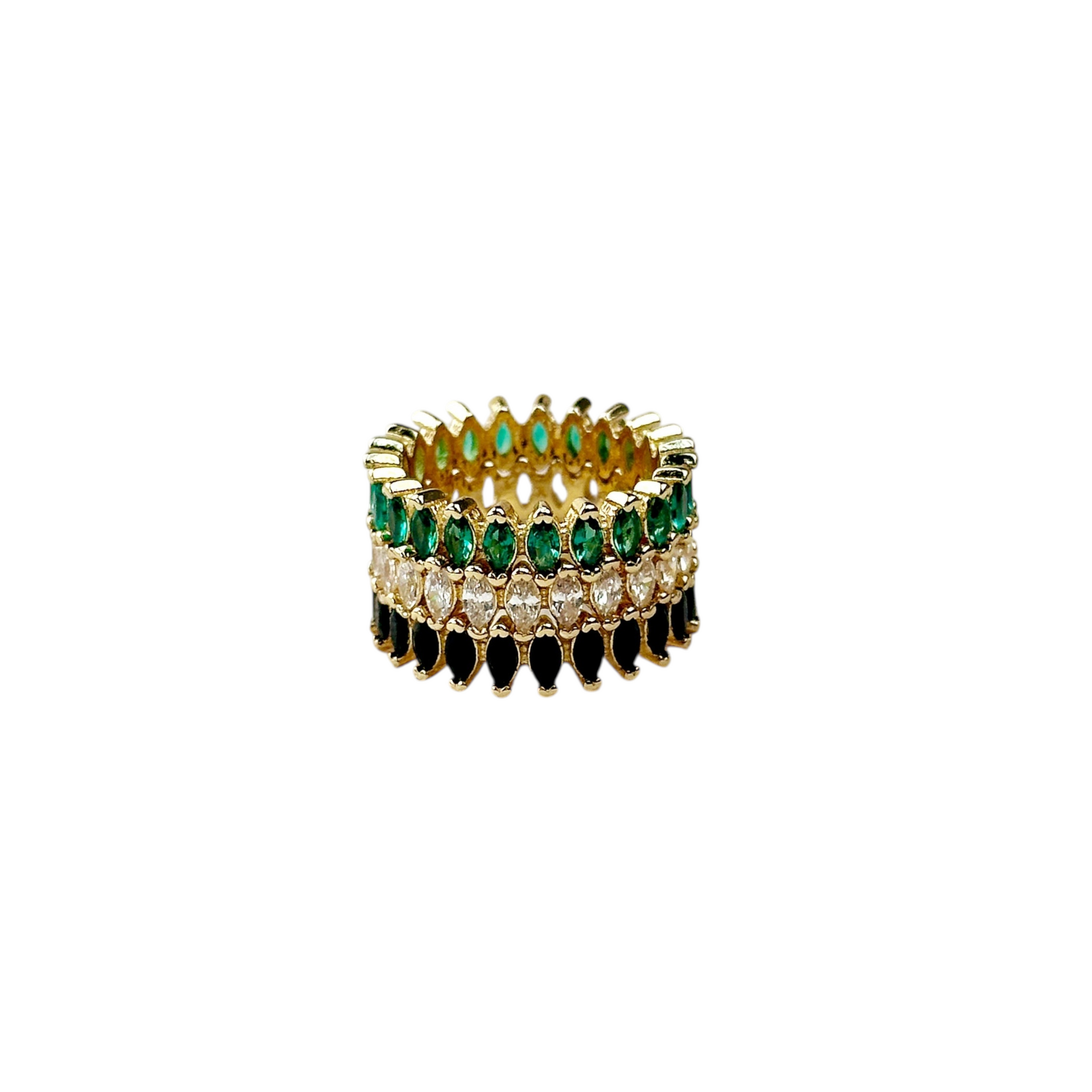 Marquise-cut stones wrap around your finger in an endless dance of light. This eternity band delivers maximum sparkle with its row of precision-set CZs — the kind of ring that catches every glance and elevates every gesture. Timeless design, modern brilliance.