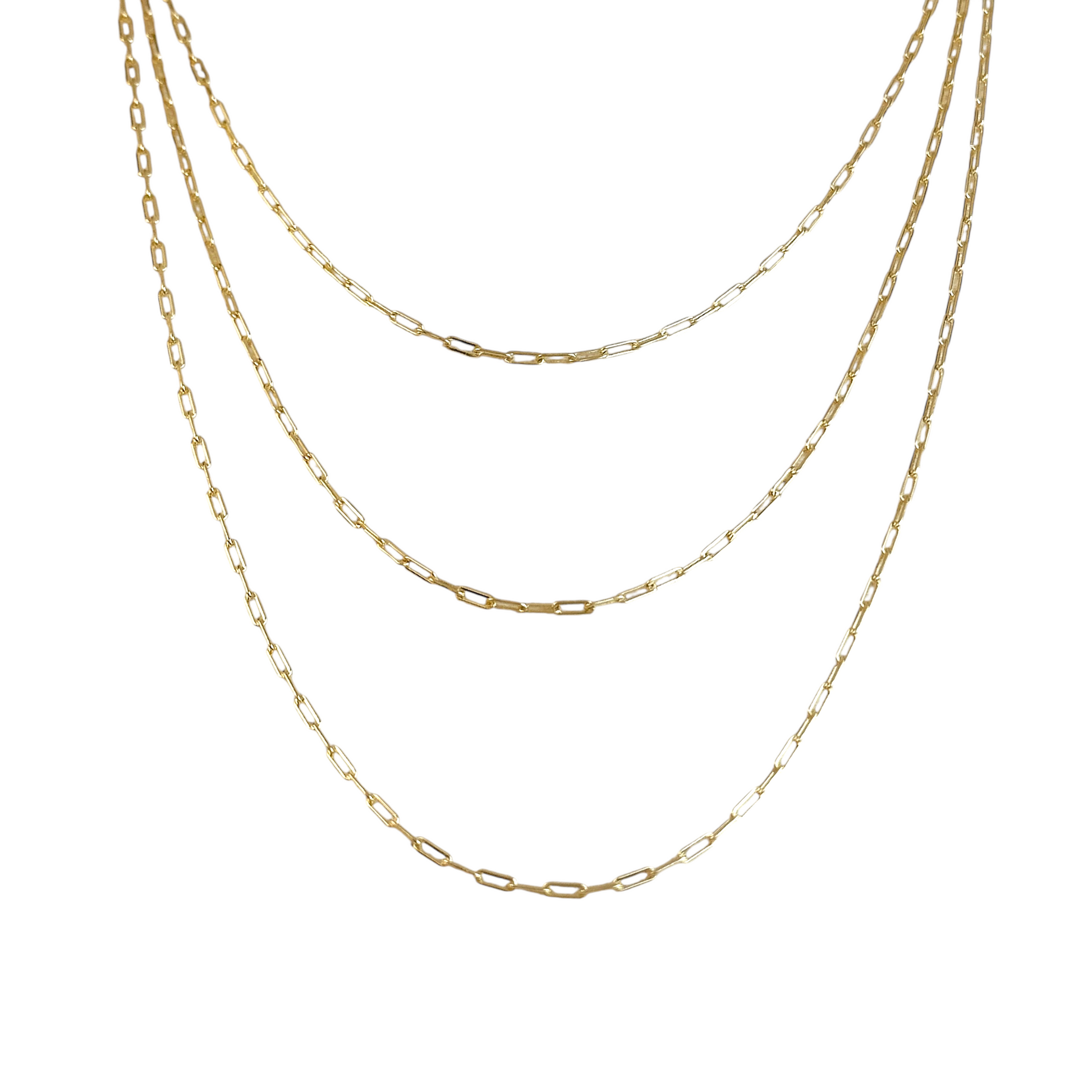 The chain that works with everything. This elegant paperclip chain features elongated links in a delicate width—modern simplicity that's perfect alone, with pendants, or layered with other necklaces. The timeless design you'll reach for every day.