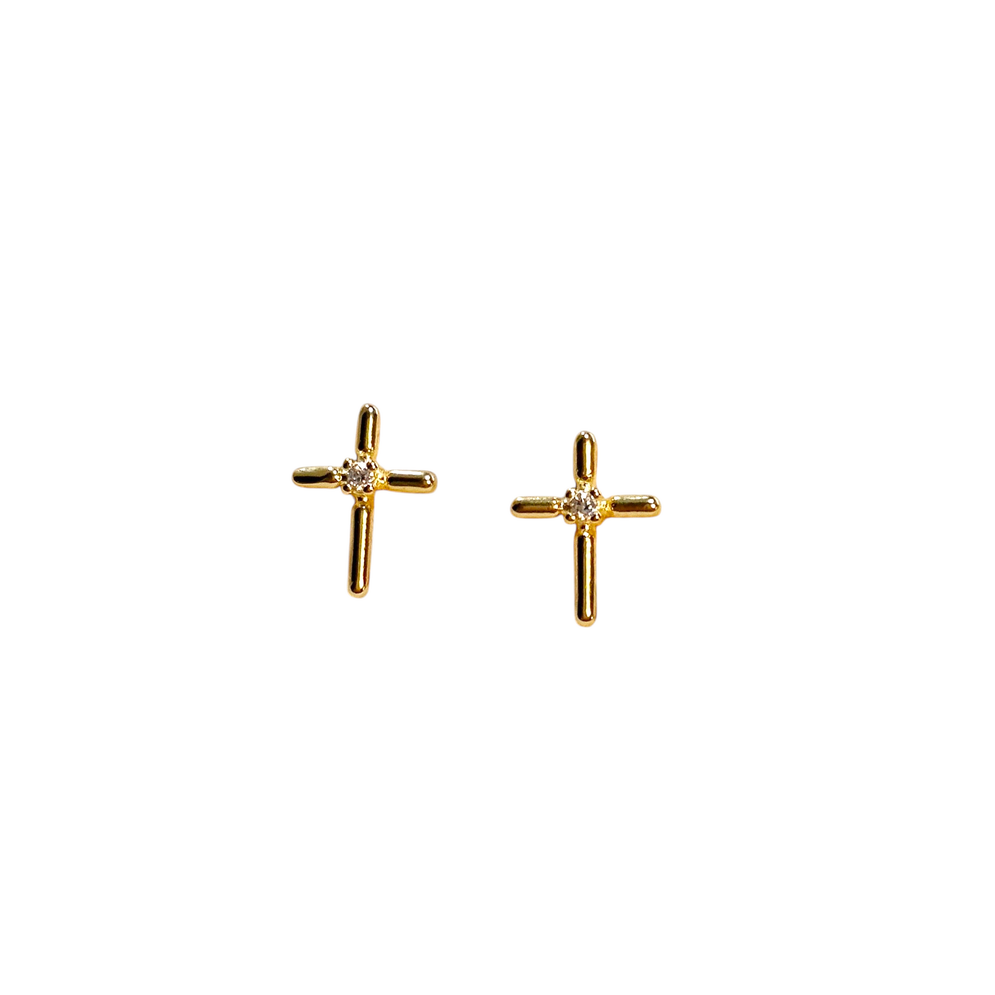 Mini Cross CZ Stud Earrings - 18K Gold Filled - Faith in Miniature